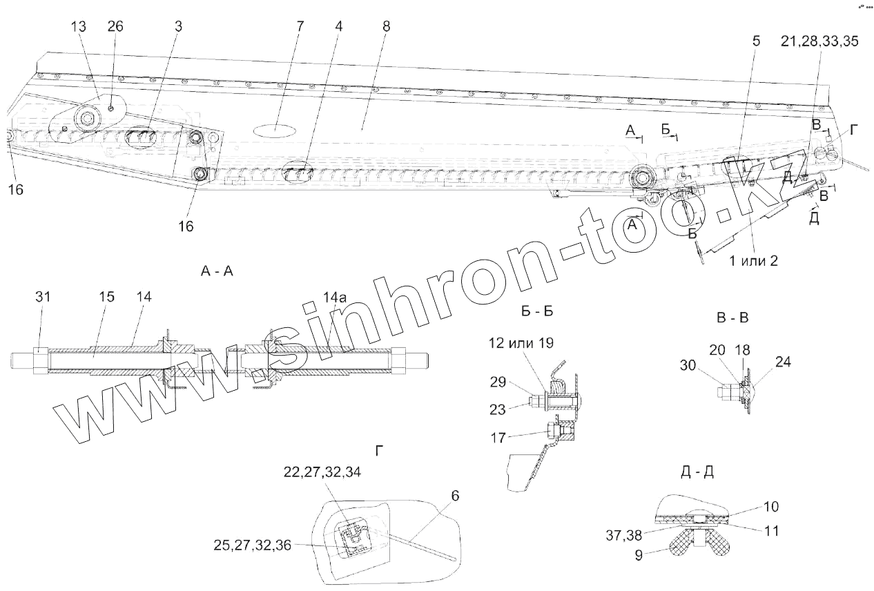 Каталог запасных частей к технике: Гомсельмаш KЗС-812. Стан решетный верхний КЗК 0260000Б-01