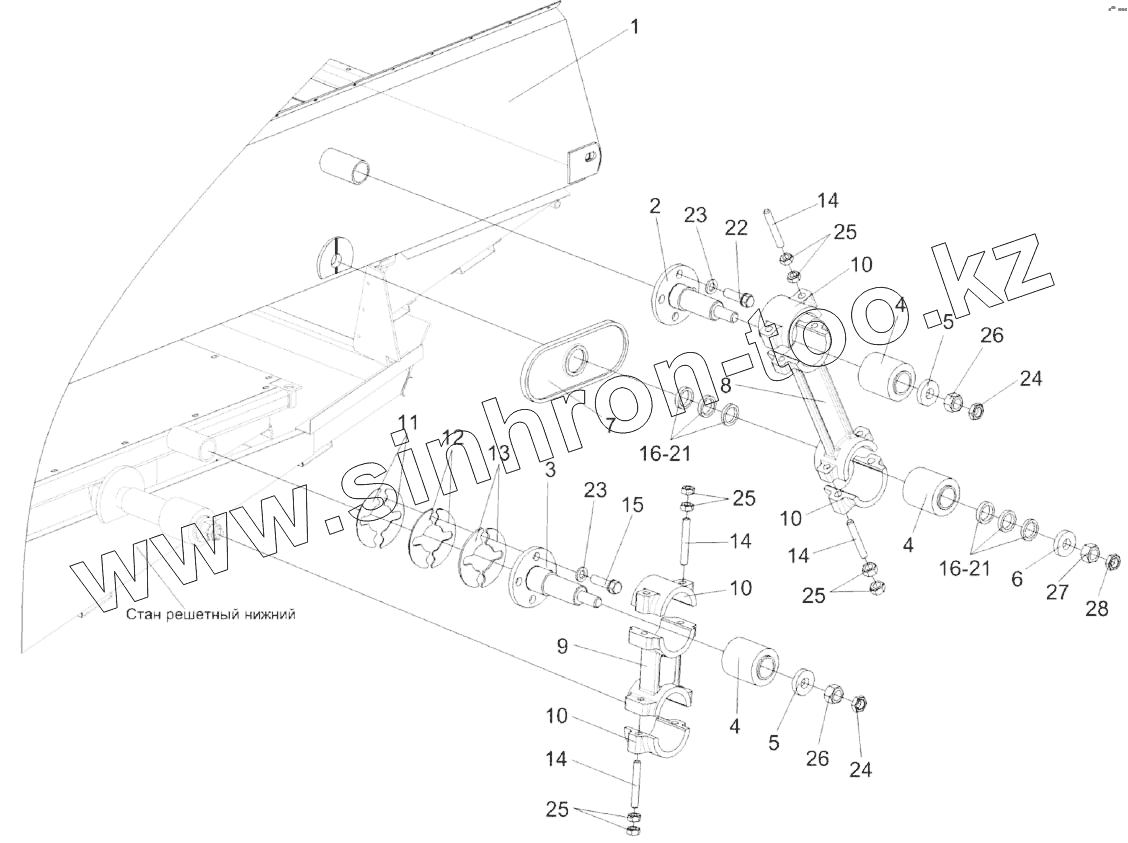 Каталог запасных частей к технике: Гомсельмаш KЗС-812. Установка привода стана решетного верхнего КЗК 0260000Б-01
