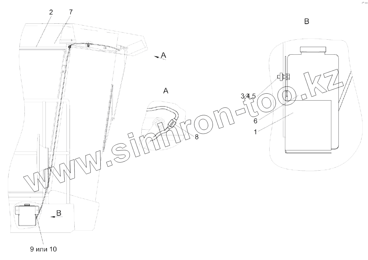 Каталог запасных частей к технике: Гомсельмаш KЗС-812. Установка стеклоомывателя КЗК-12-0120460-01