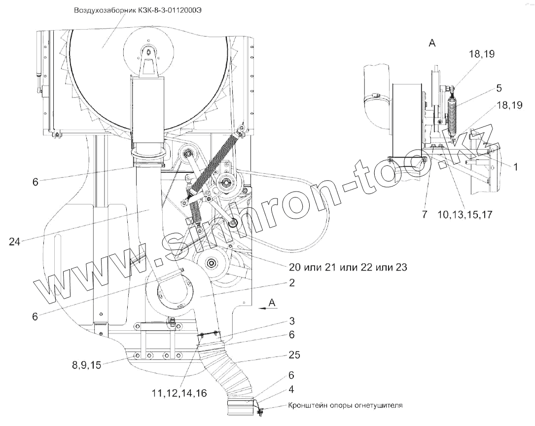 Каталог запасных частей к технике: Гомсельмаш KЗС-812. Установка вентилятора КЗК-8-3-0112100