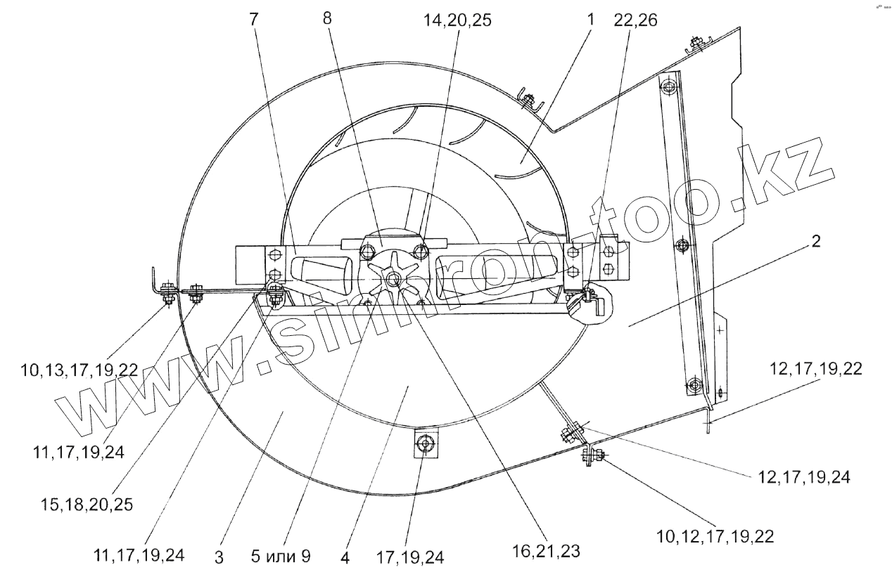 Каталог запасных частей к технике: Гомсельмаш KЗС-812. Вентилятор КЗК 0217000Б-01 (вид слева)