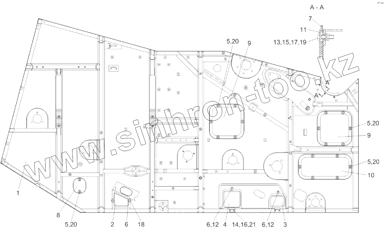 Каталог запасных частей к технике: Гомсельмаш KЗС-812. Боковина правая КЗК-8А-0202060