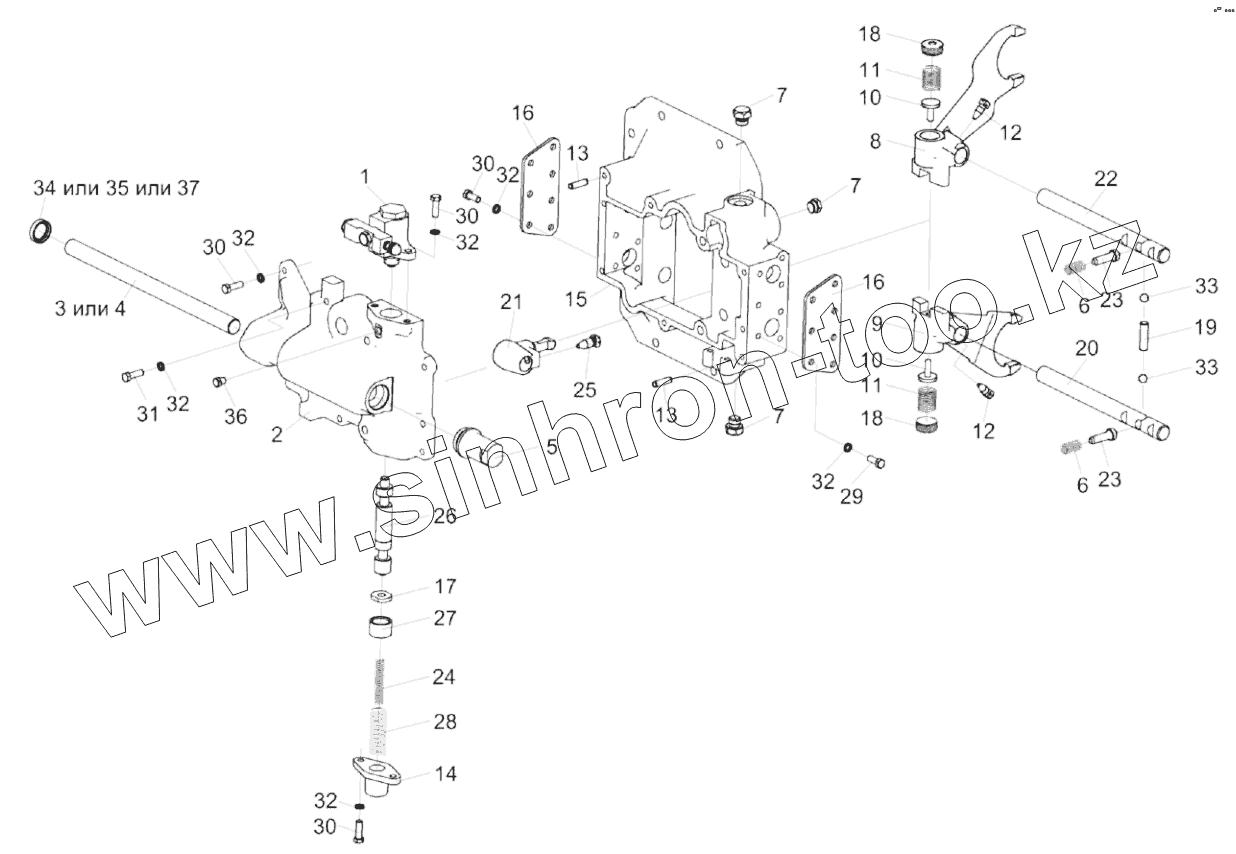 Каталог запасных частей к технике: Гомсельмаш KЗС-812. Механизм переключения передач КЗК-12-0107560