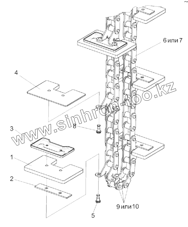 Каталог запасных частей к технике: Гомсельмаш KЗС-812. Цепь элеватора КЗР 0208080Г