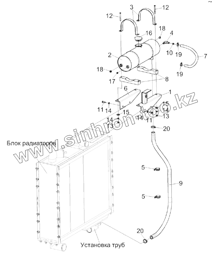Каталог запасных частей к технике: Гомсельмаш KЗС-812. Установка бачка расширительного КЗК-8К-0106070