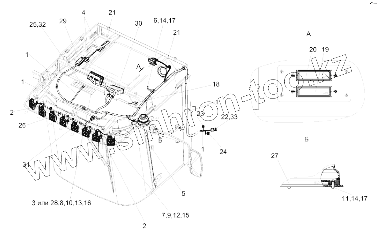 Каталог запасных частей к технике: Гомсельмаш KЗС-812. Установка электрооборудования кабины КЗК-8М-0722000
