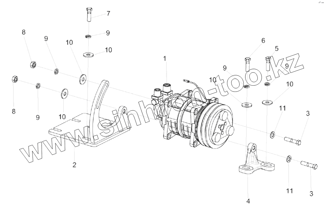 Каталог запасных частей к технике: Гомсельмаш KЗС-812. Установка компрессора КЗК-8М-0113030
