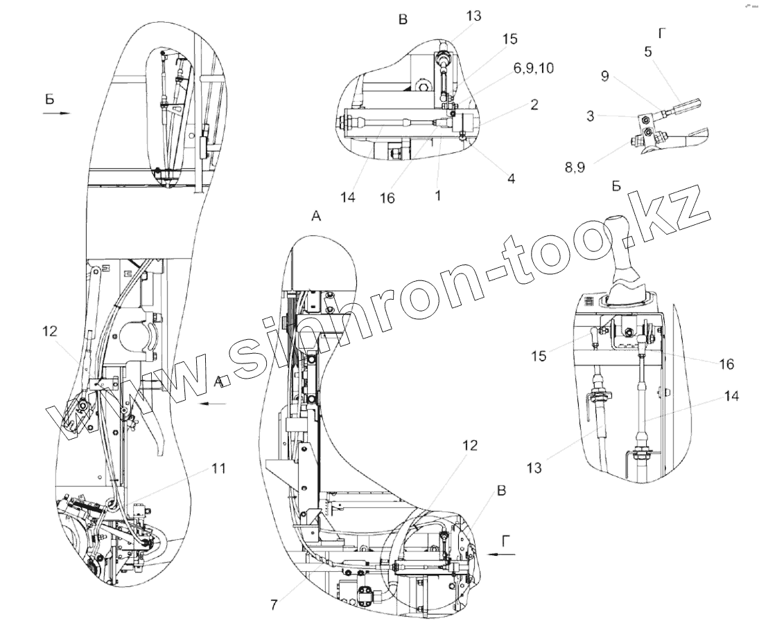 Каталог запасных частей к технике: Гомсельмаш KЗС-812. Установка механизма переключения передач КЗК-8М-0119650