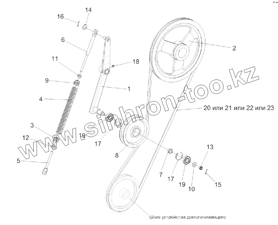Каталог запасных частей к технике: Гомсельмаш KЗС-812. Установка привода устройства домолачивающего