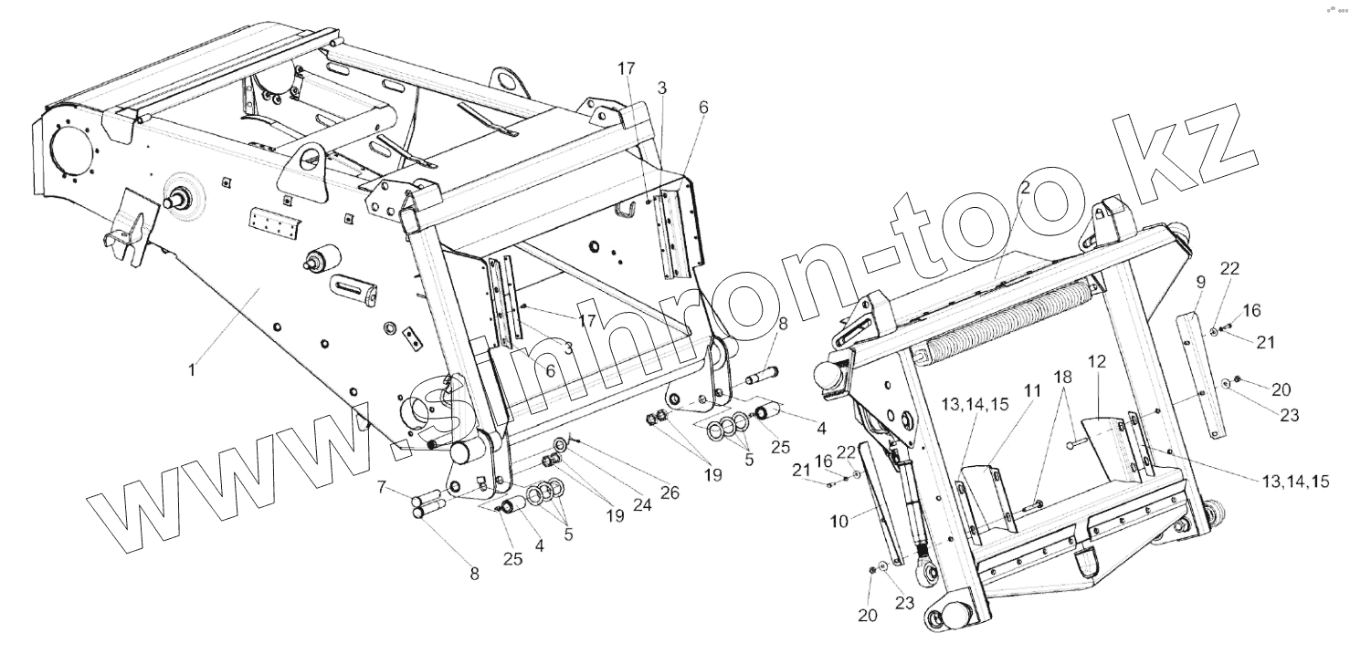 Каталог запасных частей к технике: Гомсельмаш KЗС-812. Установка рамки переходной КЗК 1780000А