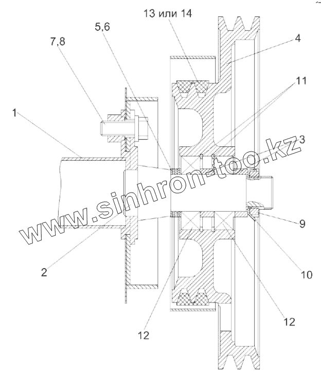 Каталог запасных частей к технике: Гомсельмаш KЗС-812. Установка шкива КЗК 0202810А