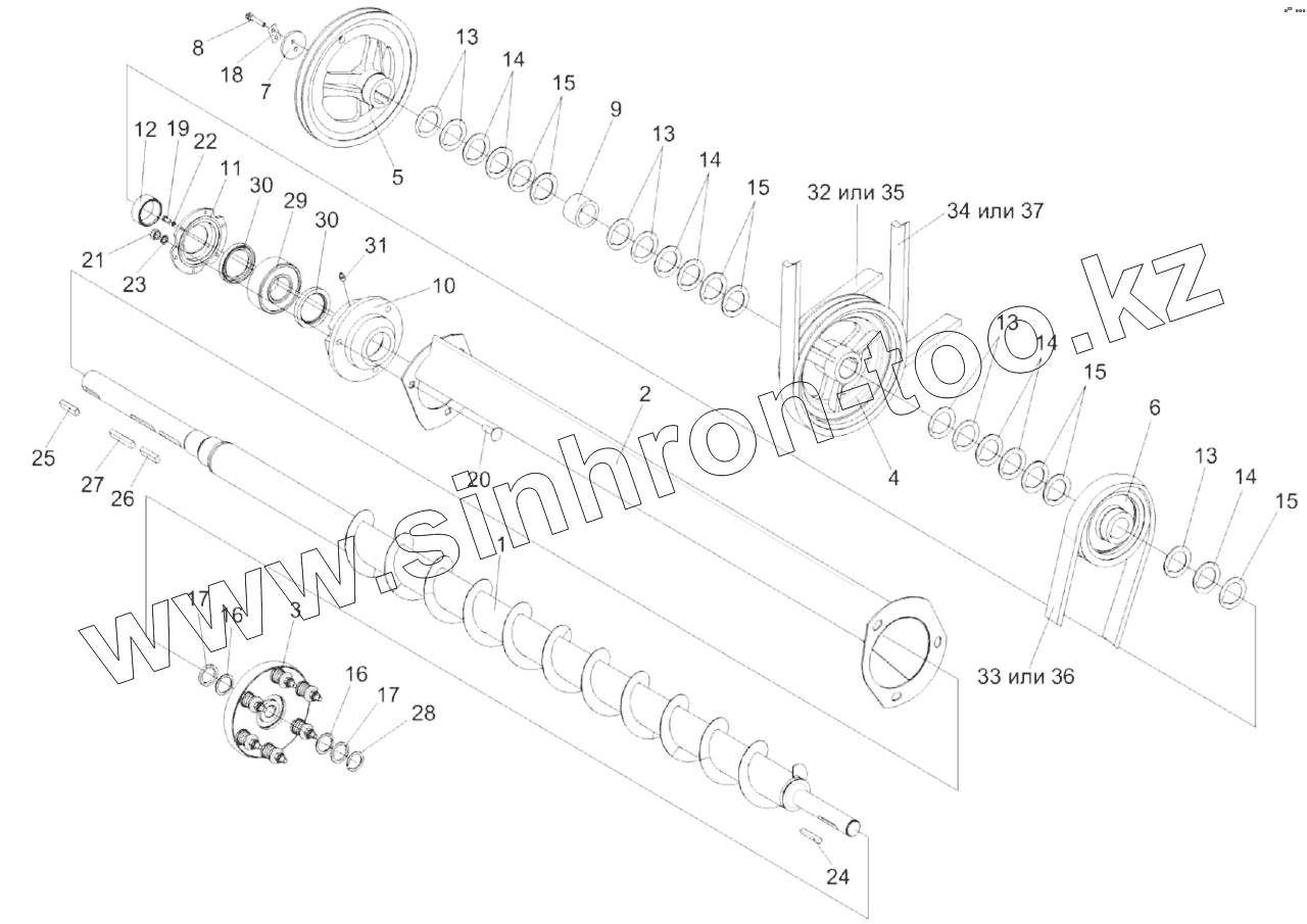 Установка шкивов на шнек распределительный КЗК 0202770В