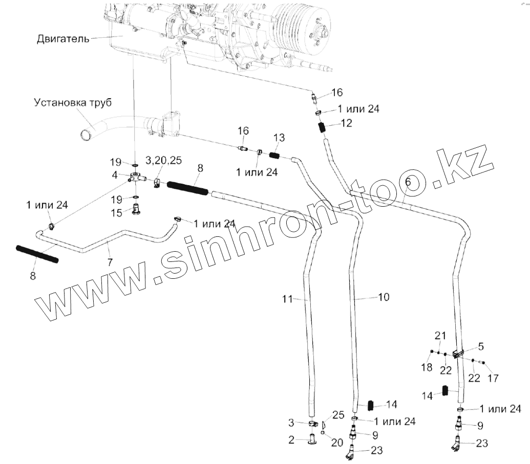Каталог запасных частей к технике: Гомсельмаш KЗС-812. Установка сливных рукавов КЗК-8К-0106490