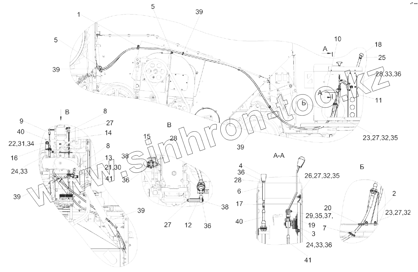 Каталог запасных частей к технике: Гомсельмаш KЗС-812. Установка тросов управления двигателем КЗК-8М-0119640
