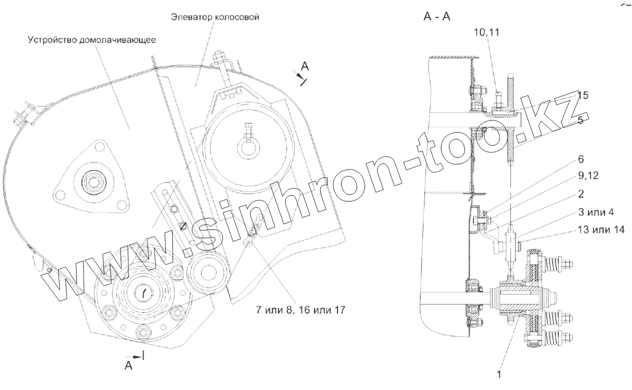 Каталог запасных частей к технике: Гомсельмаш KЗС-812. Установка цепного привода элеватора колосового