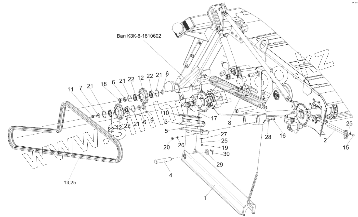 Каталог запасных частей к технике: Гомсельмаш KЗС-812 (ПАЛЕССЕ GS812). Камера наклонная. Привод транспортера