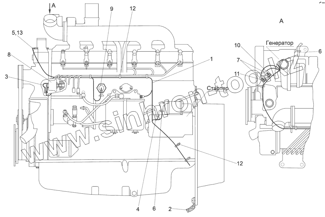 Каталог запасных частей к технике: Гомсельмаш КЗС-812С. Электрооборудование двигателя КЗК-812-0106000