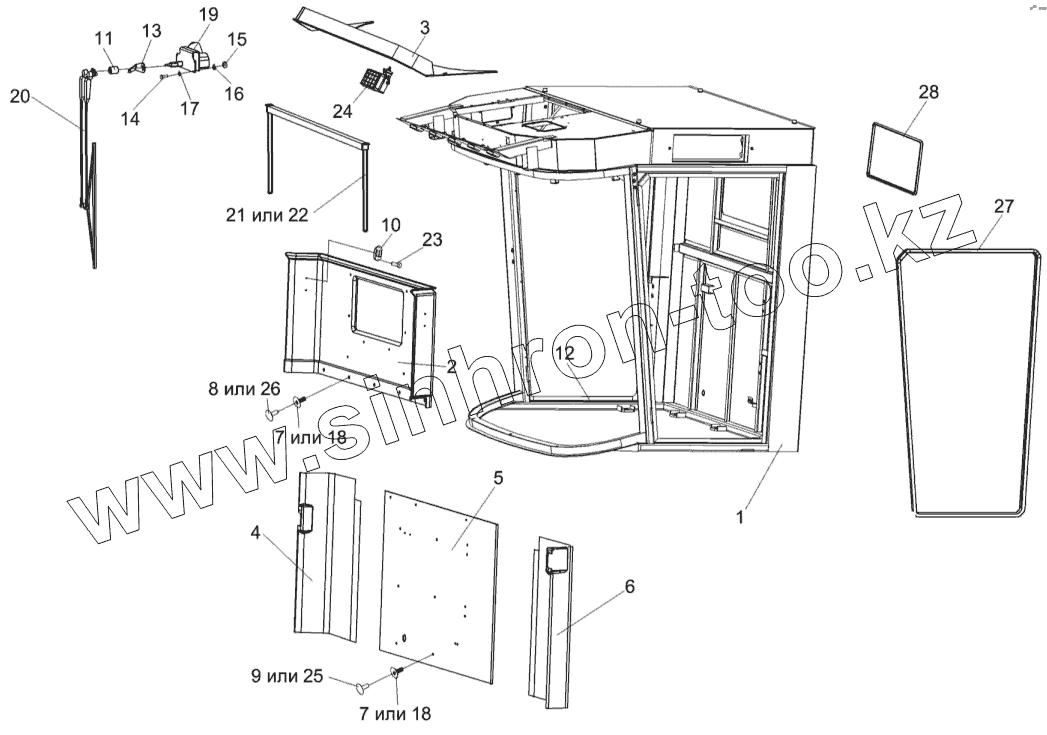 Каталог запасных частей к технике: Гомсельмаш КЗС-812С. Кабина КЗК-12-0120000-01
