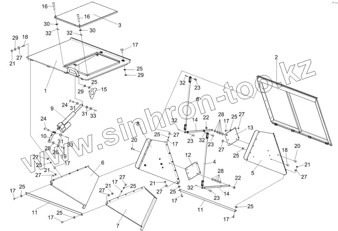 Каталог запасных частей к технике: Гомсельмаш КЗС-812С. Крыша бункера КЗК-7-0204000
