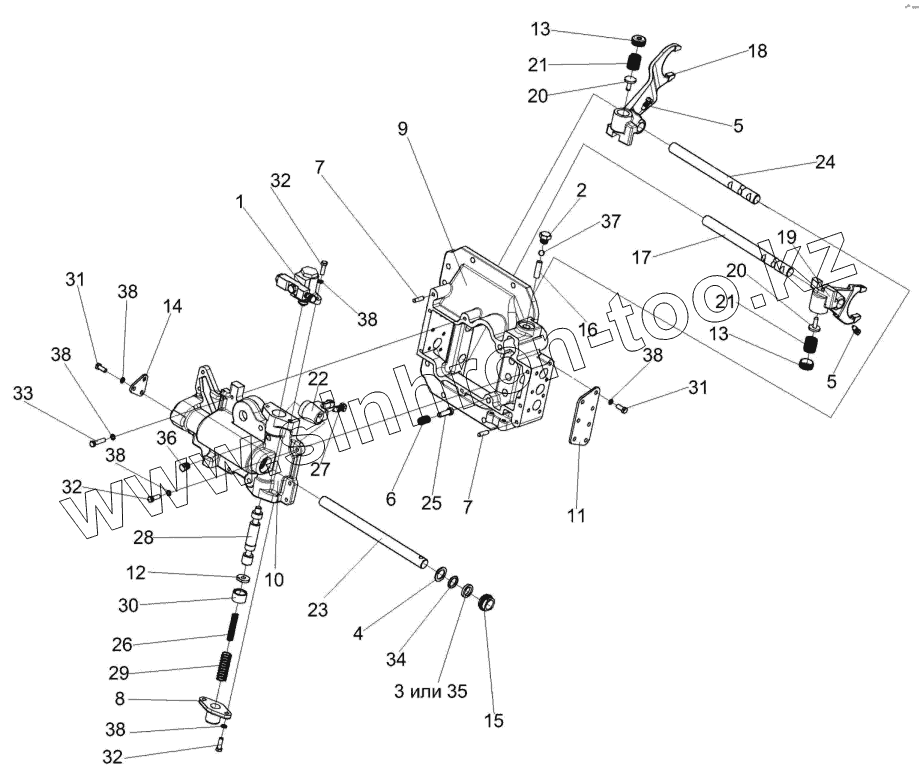 Каталог запасных частей к технике: Гомсельмаш КЗС-812С. Механизм переключения диапазонов 3518020-46160