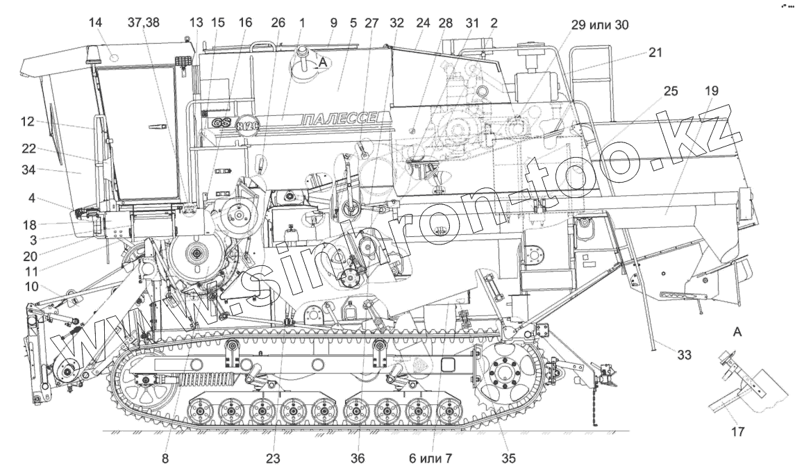 Каталог запасных частей к технике: Гомсельмаш КЗС-812С. Молотилка самоходная КЗК-812-0100000 (вид слева)