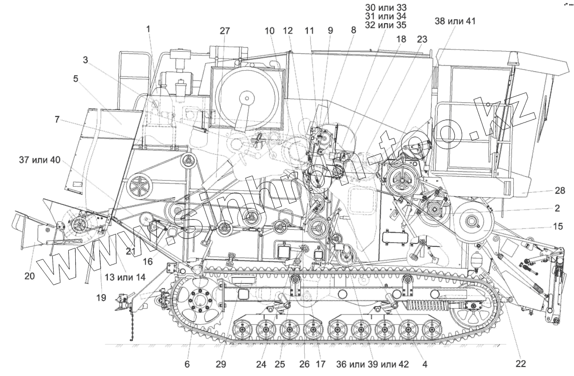 Каталог запасных частей к технике: Гомсельмаш КЗС-812С. Молотилка самоходная КЗК-812-0100000 (вид справа)
