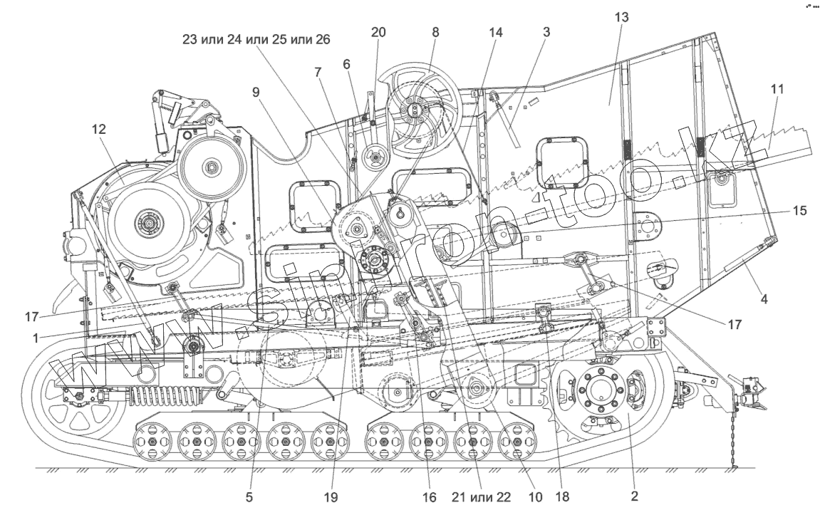 Каталог запасных частей к технике: Гомсельмаш КЗС-812С. Очистка КЗК-812-0202000-01 (вид слева)