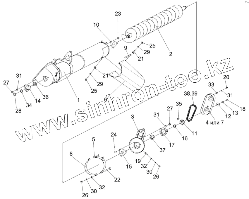 Каталог запасных частей к технике: Гомсельмаш КЗС-812С. Шнек выгрузной КЗК-8-0206000