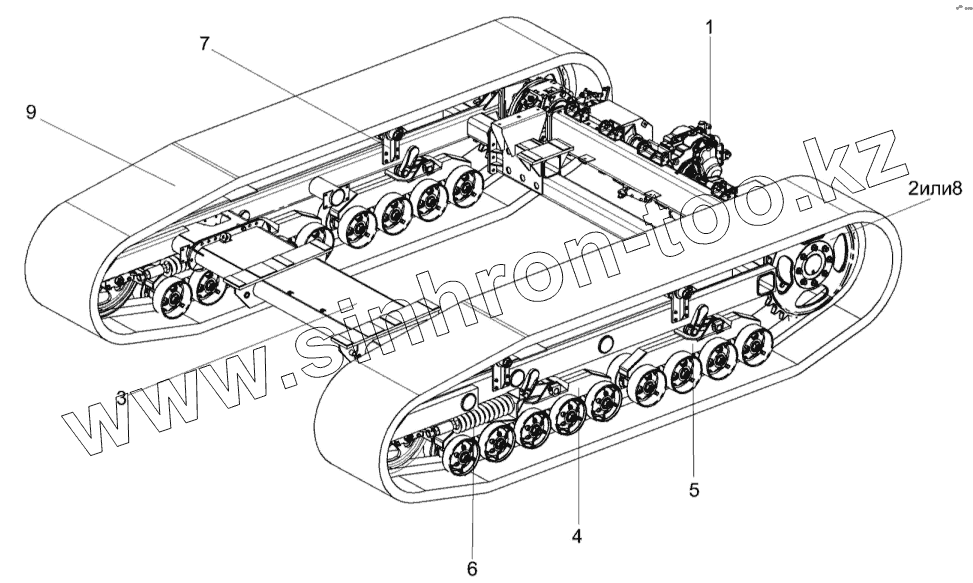 Каталог запасных частей к технике: Гомсельмаш КЗС-812С. Установка тележки гусеничной КЗК-812-0109000