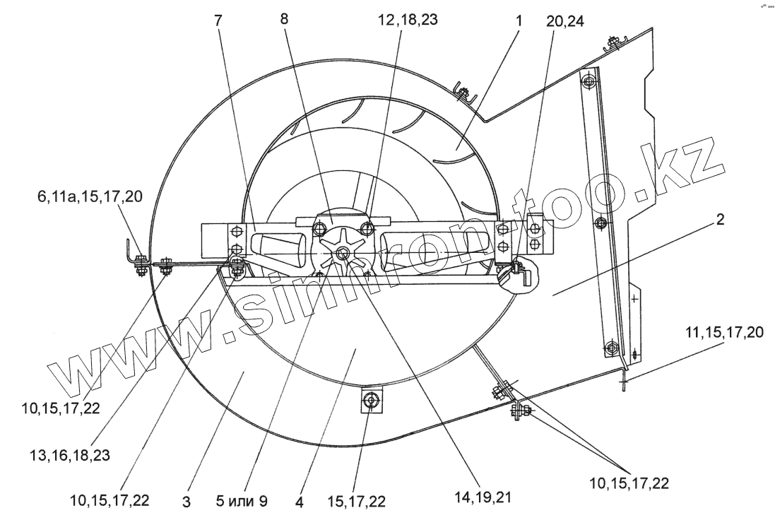 Каталог запасных частей к технике: Гомсельмаш КЗС-812С. Вентилятор КЗК 0217000Б-01 (вид слева)