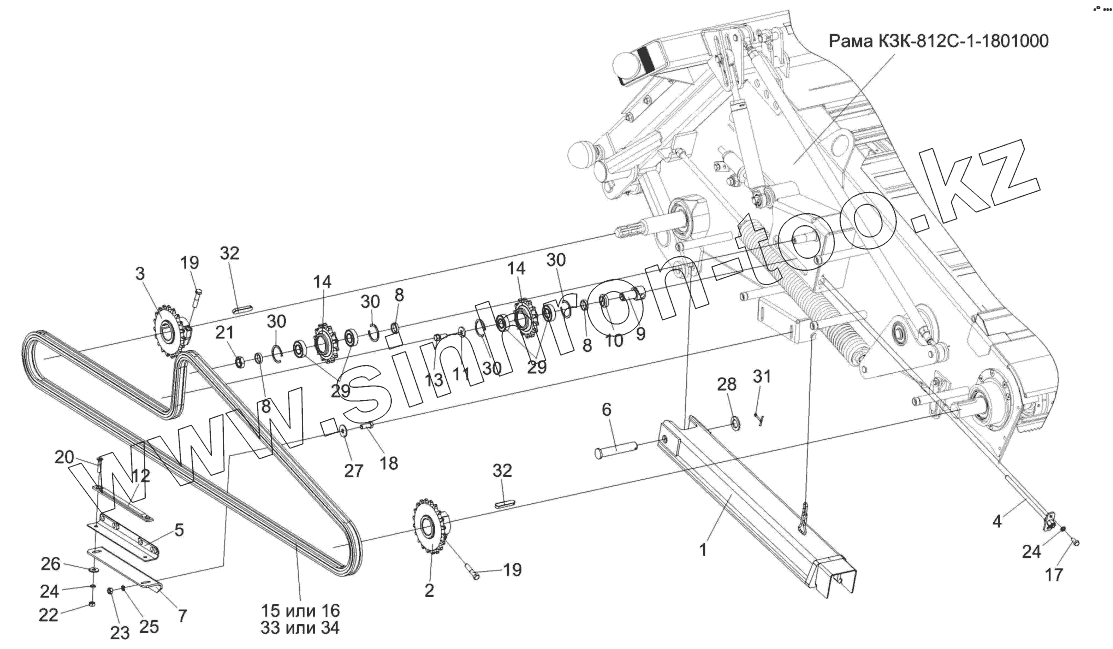 Каталог запасных частей к технике: Гомсельмаш КЗС-812С. Камера наклонная. Привод жатки КЗК-812С-1-1809100