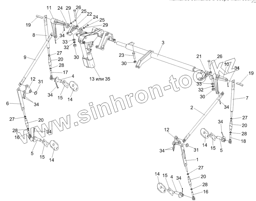 Каталог запасных частей к технике: Гомсельмаш КЗС-812С. Механизм подъема подбарабанья КЗК-8А-0115000