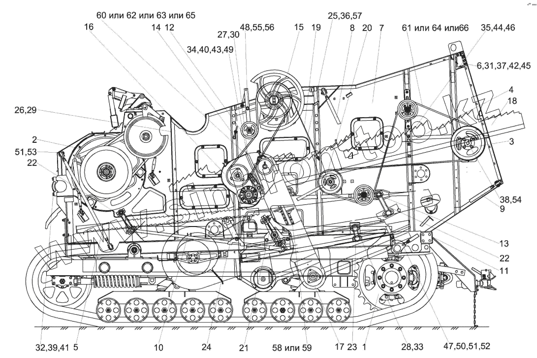 Каталог запасных частей к технике: Гомсельмаш КЗС-812С. Очистка КЗК-812С-2-0202000 (вид слева)