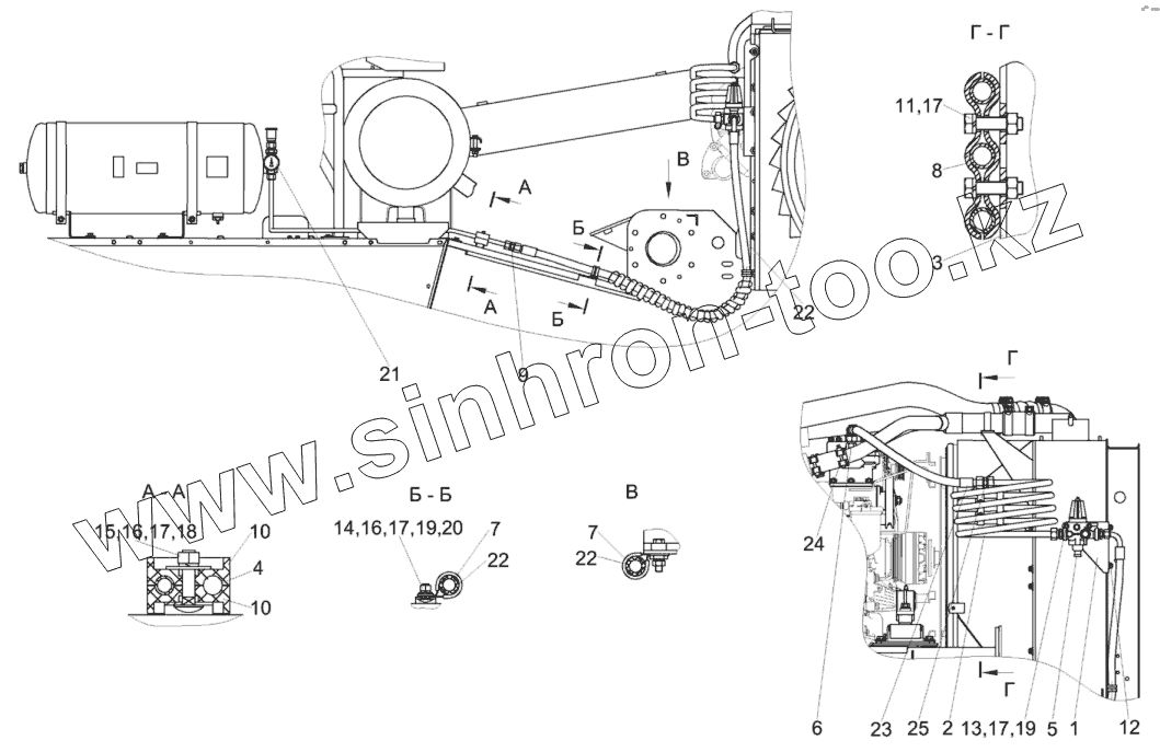 Каталог запасных частей к технике: Гомсельмаш КЗС-812С. Пневмосистема КЗК-812С-2-0800000