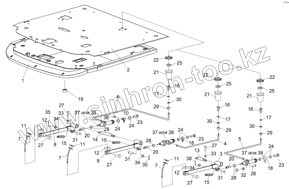 Каталог запасных частей к технике: Гомсельмаш КЗС-812С. Рычаги и трубопроводы площадки управления