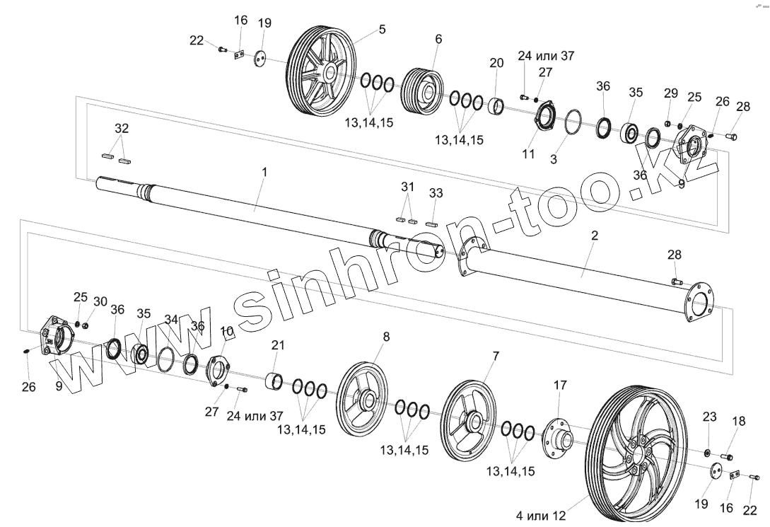 Каталог запасных частей к технике: Гомсельмаш КЗС-812С. Установка шкивов КЗК 0202860А и КЗК 0202103Б