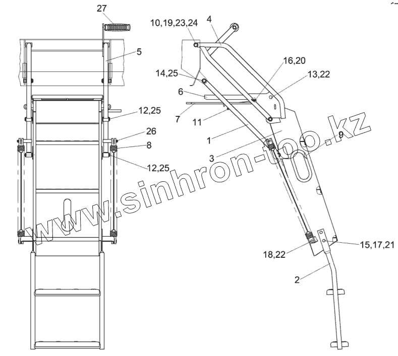 Каталог запасных частей к технике: Гомсельмаш КЗС-812С. Установка трапа КЗК-812-0117000