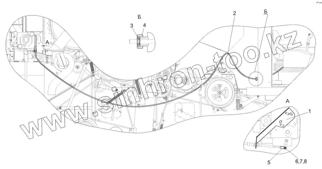 Каталог запасных частей к технике: Гомсельмаш КЗС-812С. Установка троса ГСТ КЗК-8-0119150