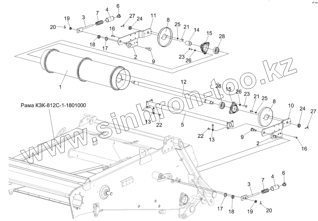 Каталог запасных частей к технике: Гомсельмаш КЗС-812С. Установка вала нижнего КЗК-8-1816000