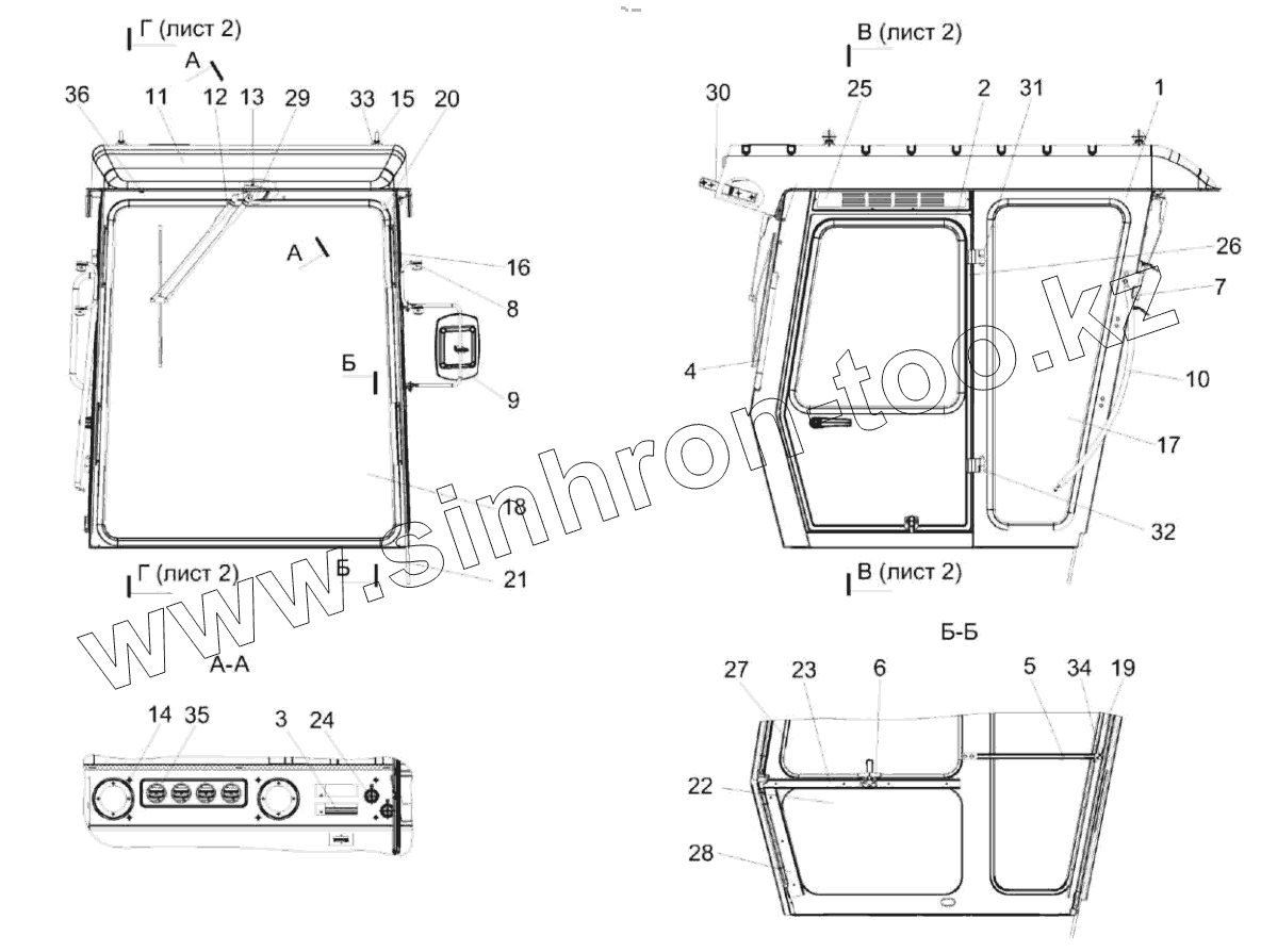 Каталог запасных частей к технике: Гомсельмаш MS280F. Кабина УЭС-6-2-0200000