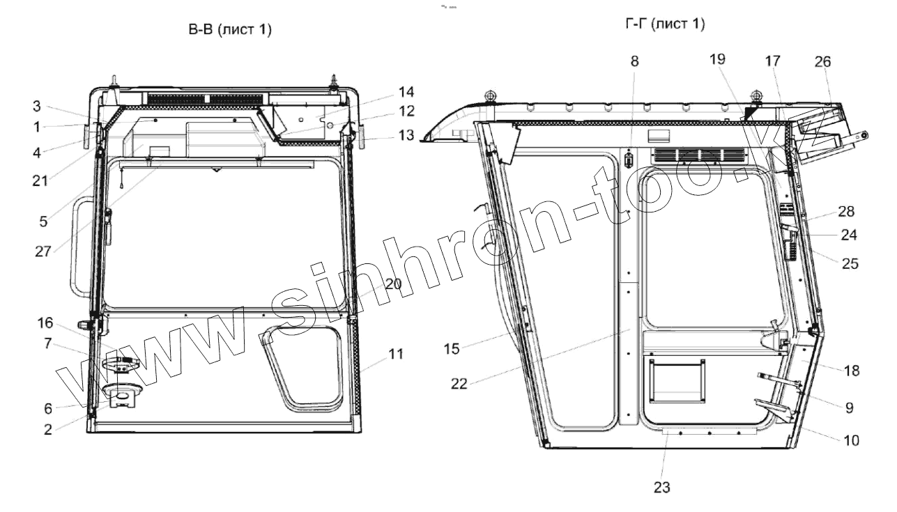 Каталог запасных частей к технике: Гомсельмаш MS280F. Кабина УЭС-6-2-0200000