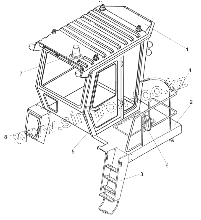 Каталог запасных частей к технике: Гомсельмаш MS280F. Кабина УЭС-6-2-0200000 (общий вид)