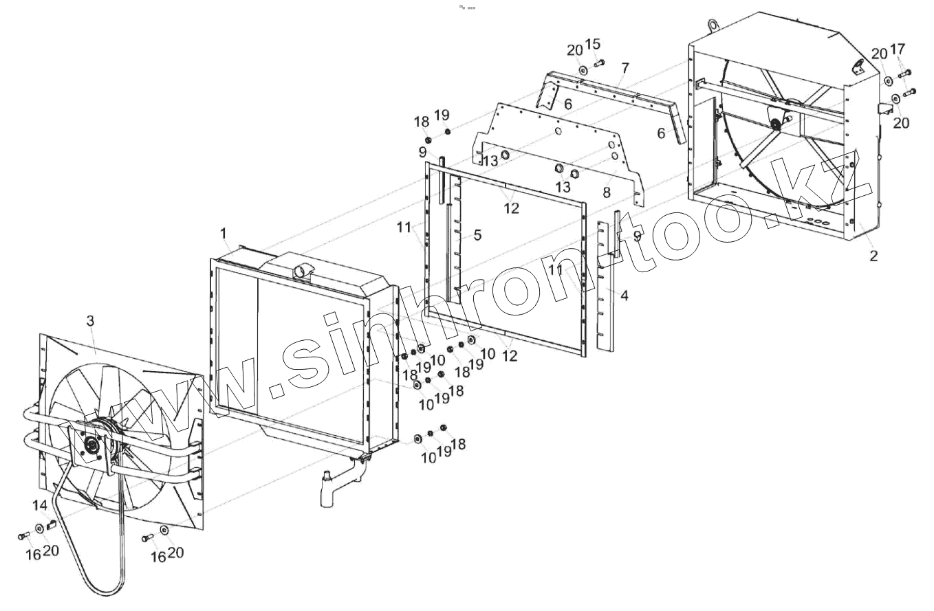 Каталог запасных частей к технике: Гомсельмаш MS280F. Установка радиатора УЭС-6-1-0400040