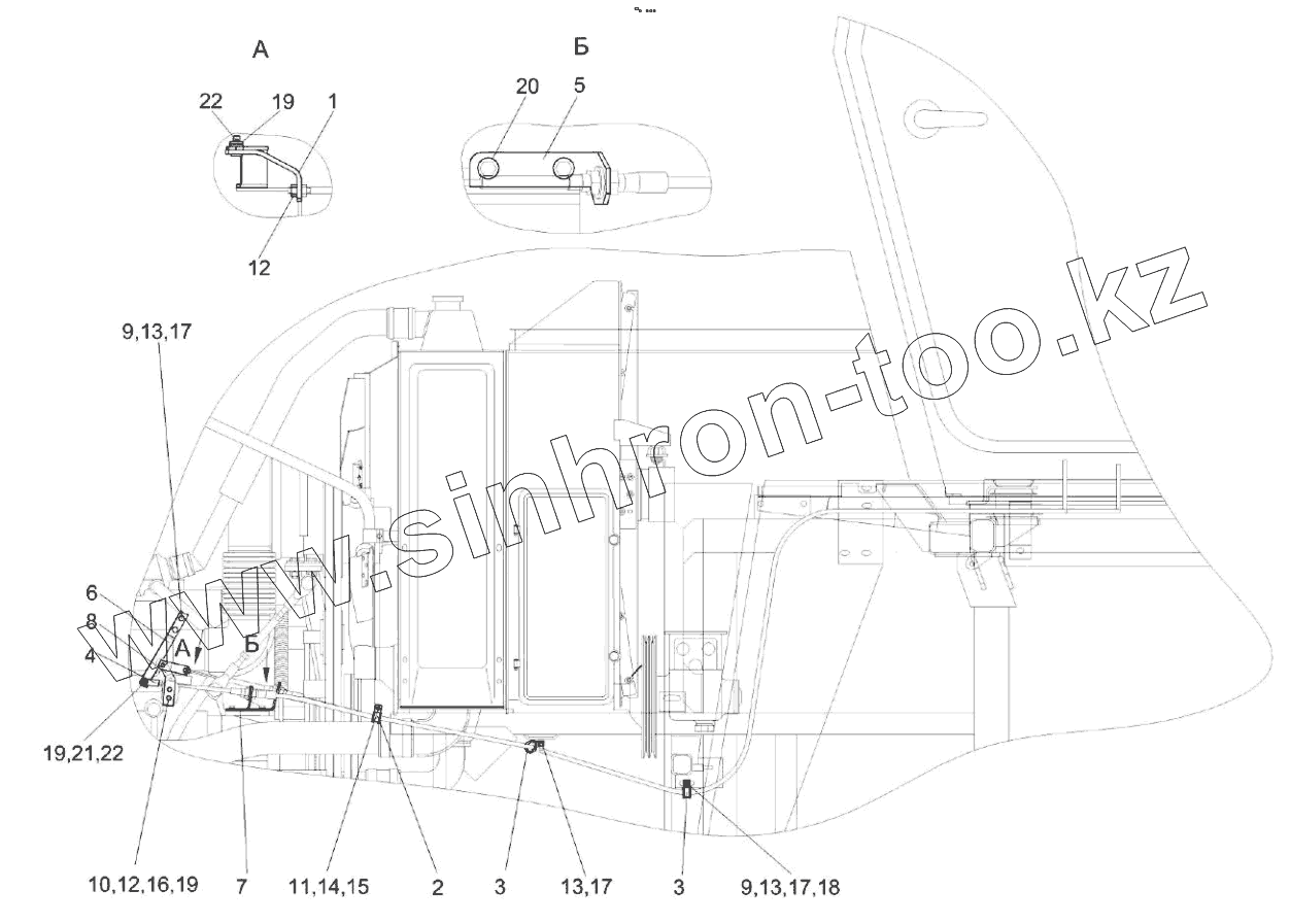 Каталог запасных частей к технике: Гомсельмаш MS280F. Установка тросов управления двигателем УЭС-6-0300010