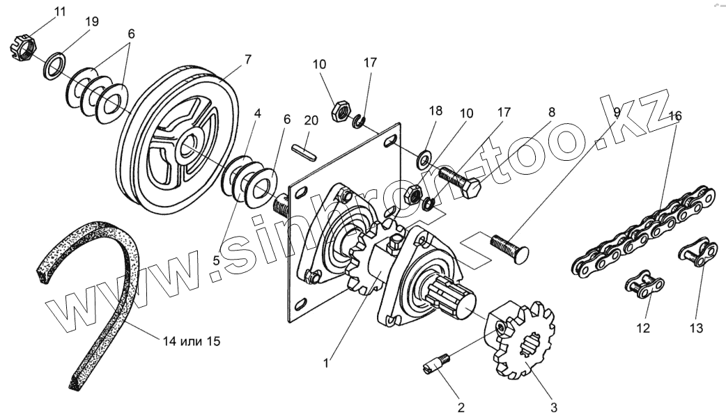 Натяжное устройство цепи привода шнека