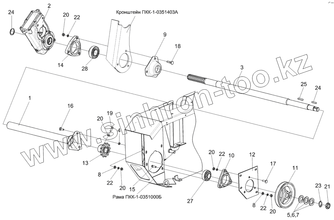 Каталог запасных частей к технике: Гомсельмаш ПКК-1-0350000А. Установка вала ПКК-1-0350601А