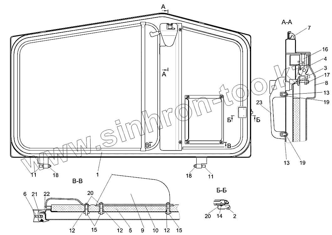 Каталог запасных частей к технике: Гомсельмаш УЭС-280. Дверь кабины УЭС 0200240А-01
