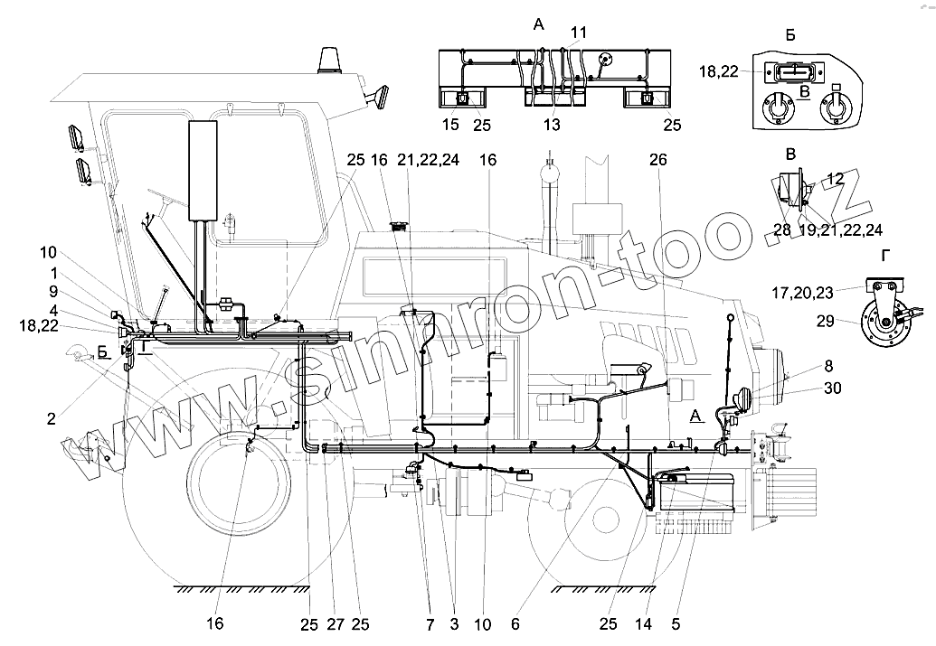 Каталог запасных частей к технике: Гомсельмаш УЭС-280. Электрооборудование энергосредства (вид сбоку)