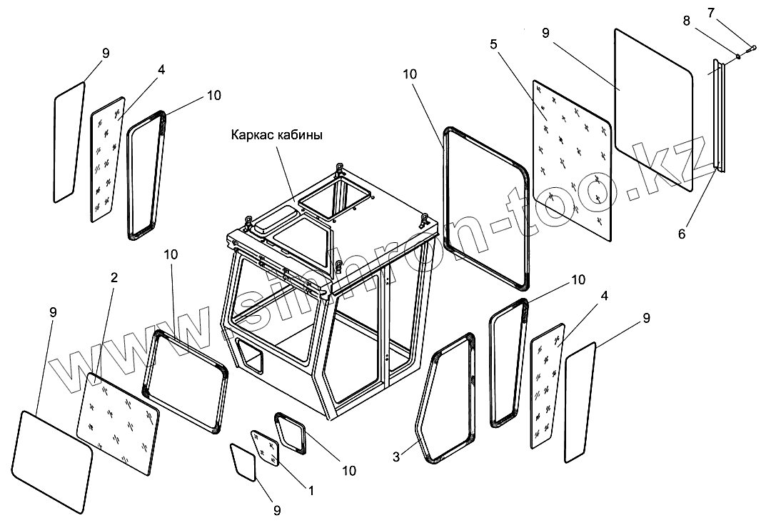 Кабина УЭС 0200000-01 (уплотнители и стекла)