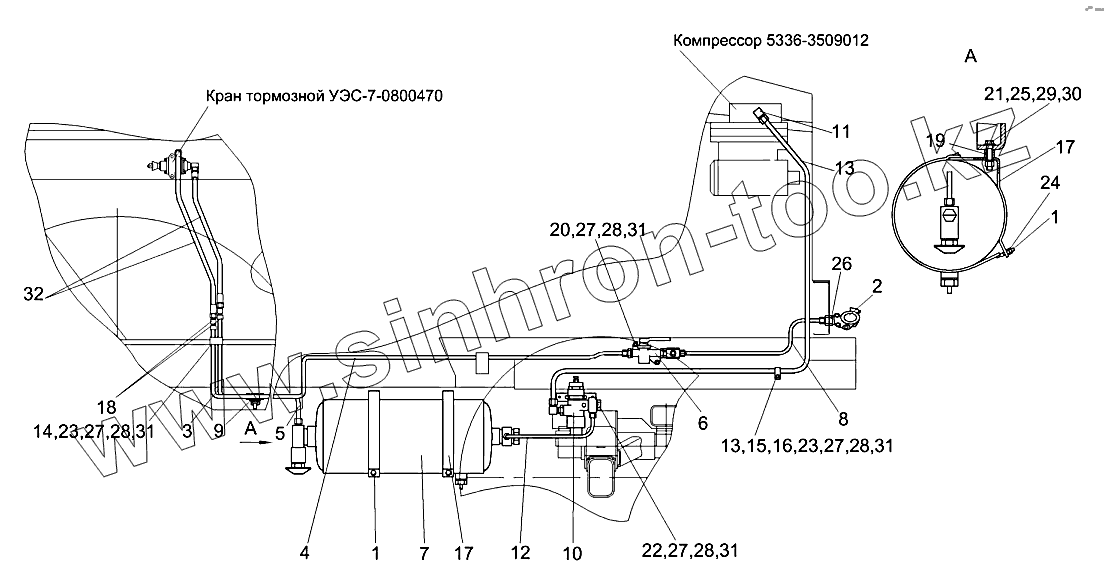 Каталог запасных частей к технике: Гомсельмаш УЭС-280. Пневмосистема УЭС-8-0800000